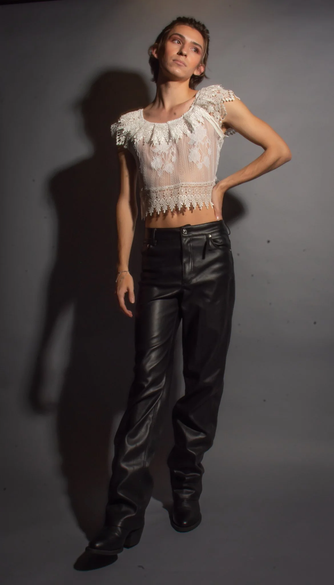 This Line was inspired by the fashion worn on the streets and in the infamous clubs in Berlin, Germany. Items were made completely from scratch and modified pre-existing clothing. The themes expressed are techno, kink, leather, and streetwear.