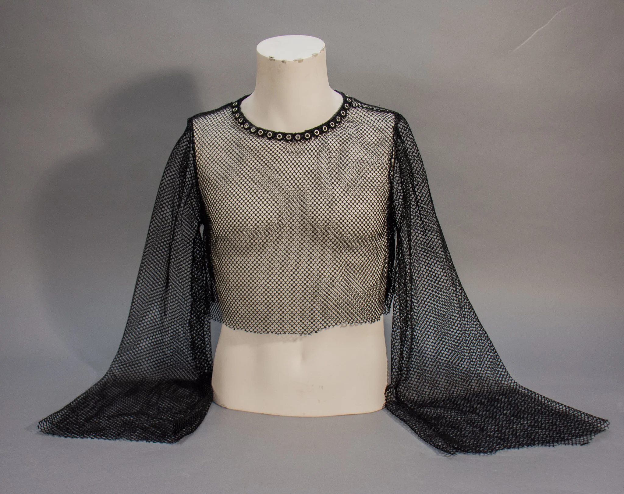 I modified this top from an existing mesh top from Goodwill. I removed the back and added trim to the collar, hem, and sleeves, as well as recreated the back to be open with the trim.